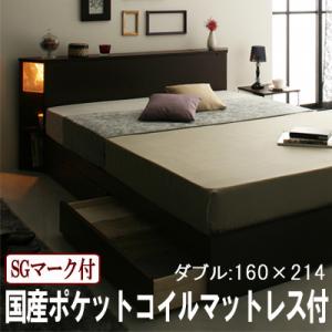 ●ワンランク上の機能とデザインモダンライト・ミラー付き収納ベッド ダブル MORE モア【国産ポケットコイルマットレス付き】 国産フレーム 引出収納付き【送料無料】(代引不可)【0403PUP10EG】【ポイント10倍】