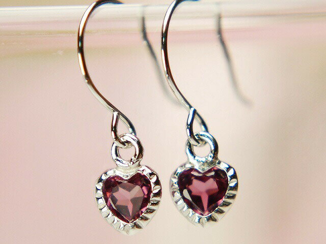 あなたはハート?それともラウンド?60種類から選んで下さい!天然のロードライトガーネットを使用したミル打ちデザインが可愛いフックピアスです!可愛いハートデザインです!!ロードライトガーネットは1月の誕生石です!●使用石:天然ロードライトガーネット 約3mm 2石●使用地金:K14WGホワイトゴールド 刻印あり●サイズ:縦約3mm×横約3mmポスト頂上からモチーフ底までの高さ:約11mm●付属品:品質保証書(当社発行) ピアスケース